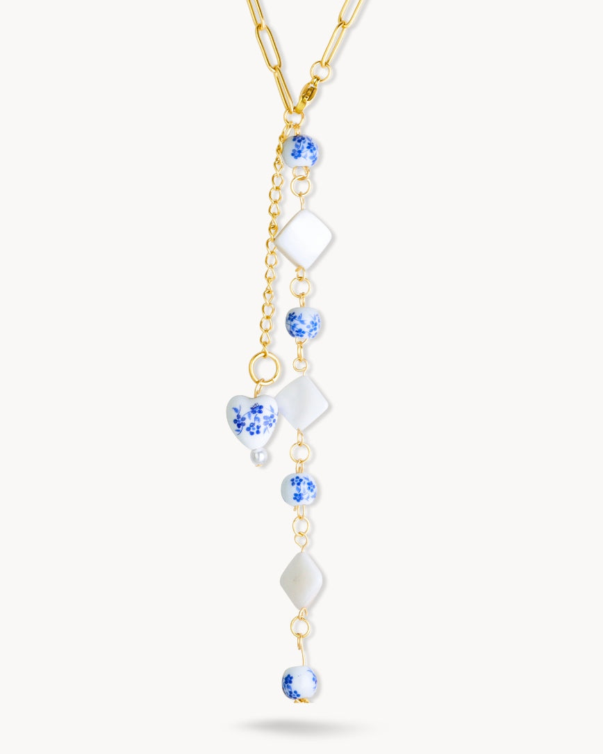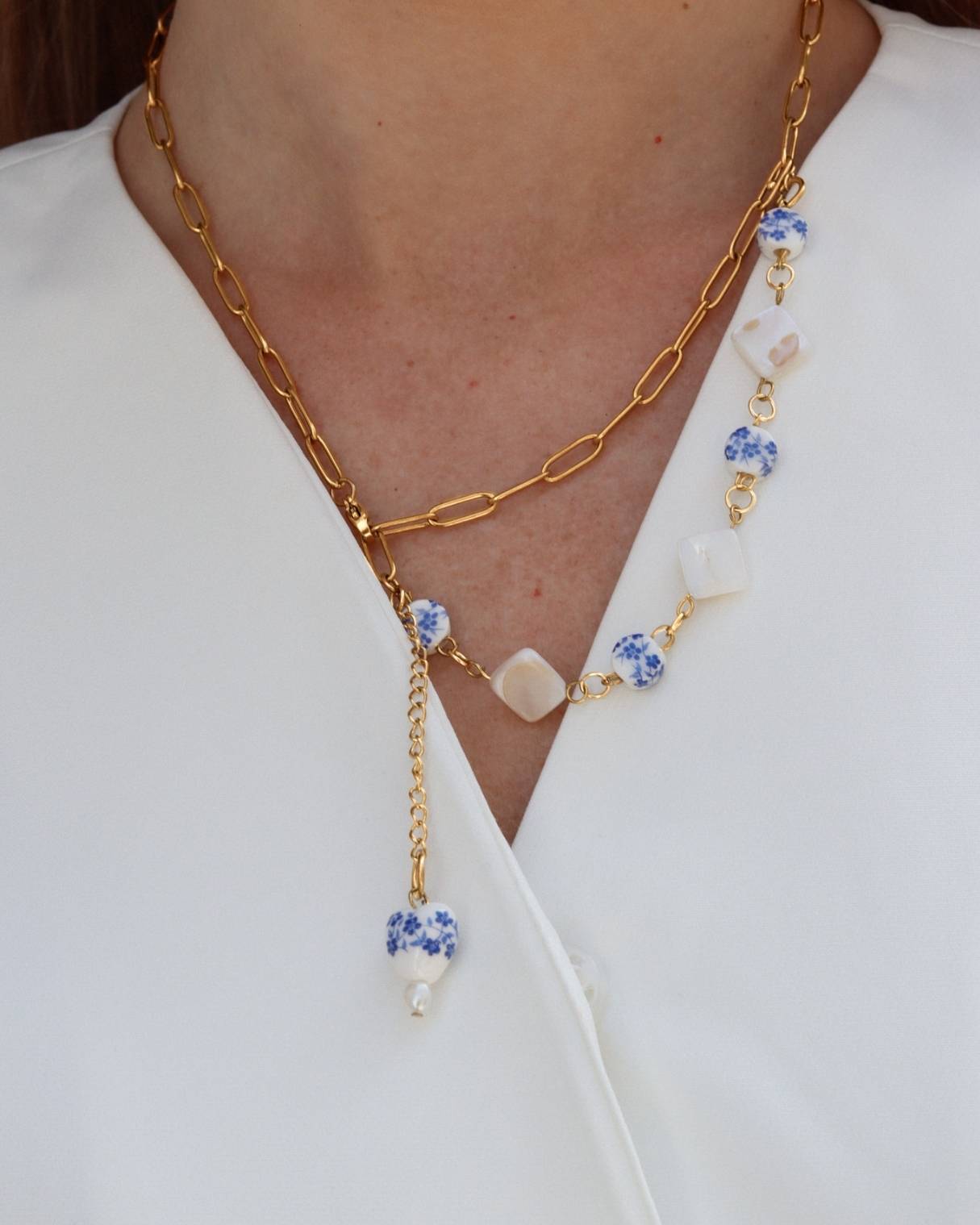 Inspired by the Mediterranean aesthetic of French Provence and Nordic elegance, this versatile necklace can be worn in multiple ways. With hand-painted ceramic details, you can wear it as a choker or pick up one of the pendants and let another fall, creating a unique style for every occasion.