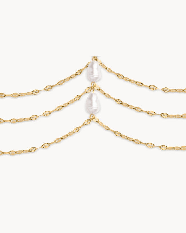 Inspired by French Renaissance jewelry. Naturally beautiful with its pearls and triple chain, it is unique and a statement piece!