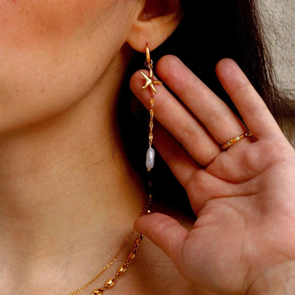 Let yourself be enveloped by the unique style of the Safirina Asymmetric Hoops! Ideal for wearing to the beach! These elegant long hoops will make you stand out without compromising comfort. Look like a goddess all day long!