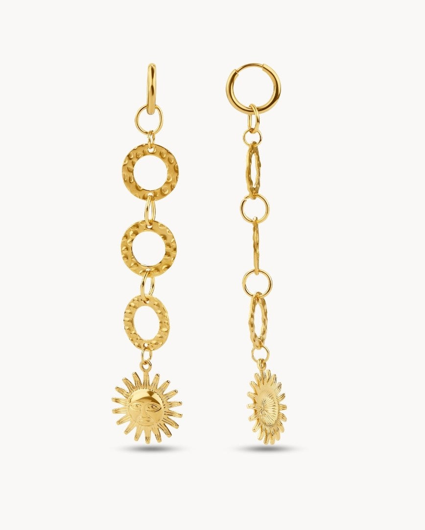 These Epifania earrings will make you look divine and radiant with light! With a hanging sun full of happiness and a joy of life, they will give you light even if it's cloudy. These unique earrings will make you shine like the sun. Shine, beautiful!