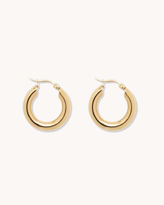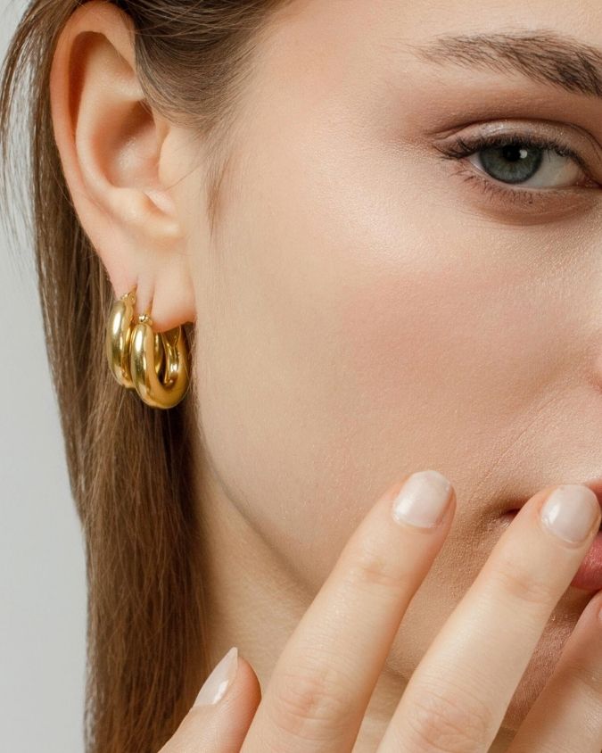 Smaller version of our thick drop-shaped hoops: Elegance and sobriety. Shine bright with your power! It's perfect for days when you want to wear something with bold yet elegant personality. Are you going to miss the opportunity to have it?