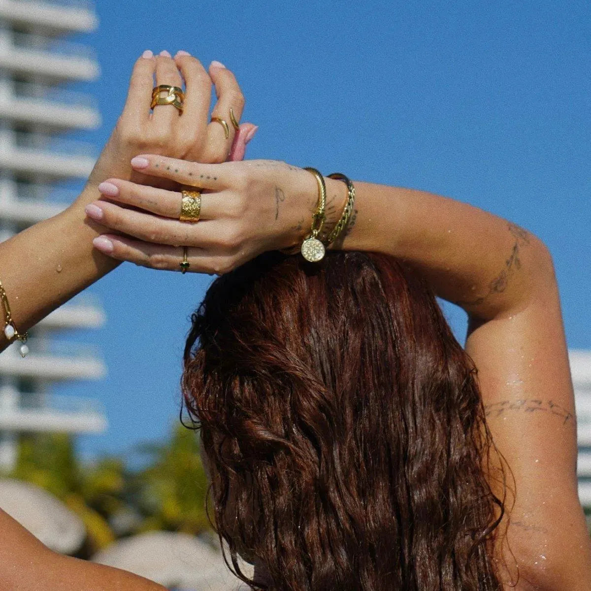 Our pieces are fully resistant to sweat, water, heat, and everyday products like perfumes or lotions.