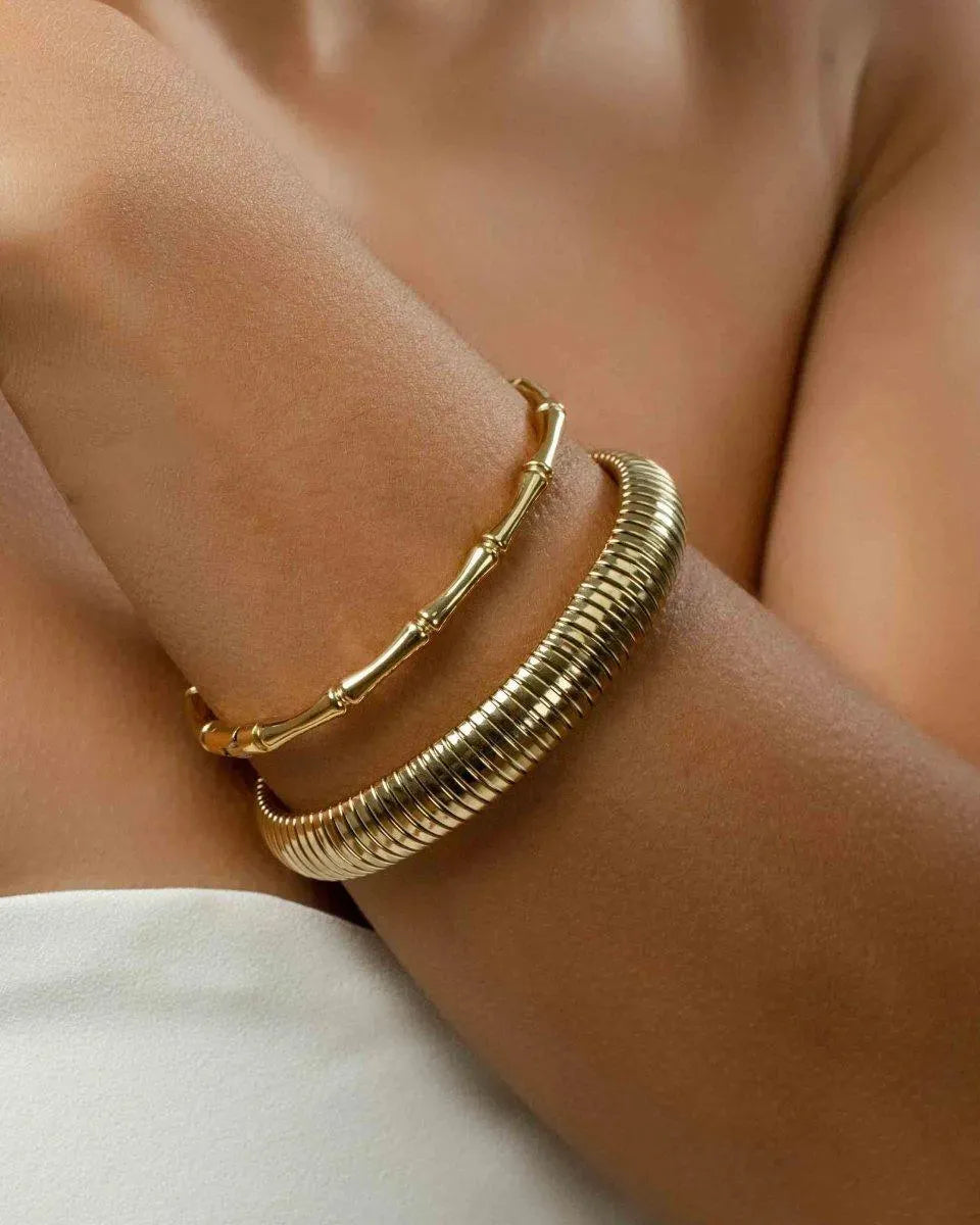 Inspired by the natural texture of bamboo, this bracelet reflects an elegant fusion of strength and organic beauty.